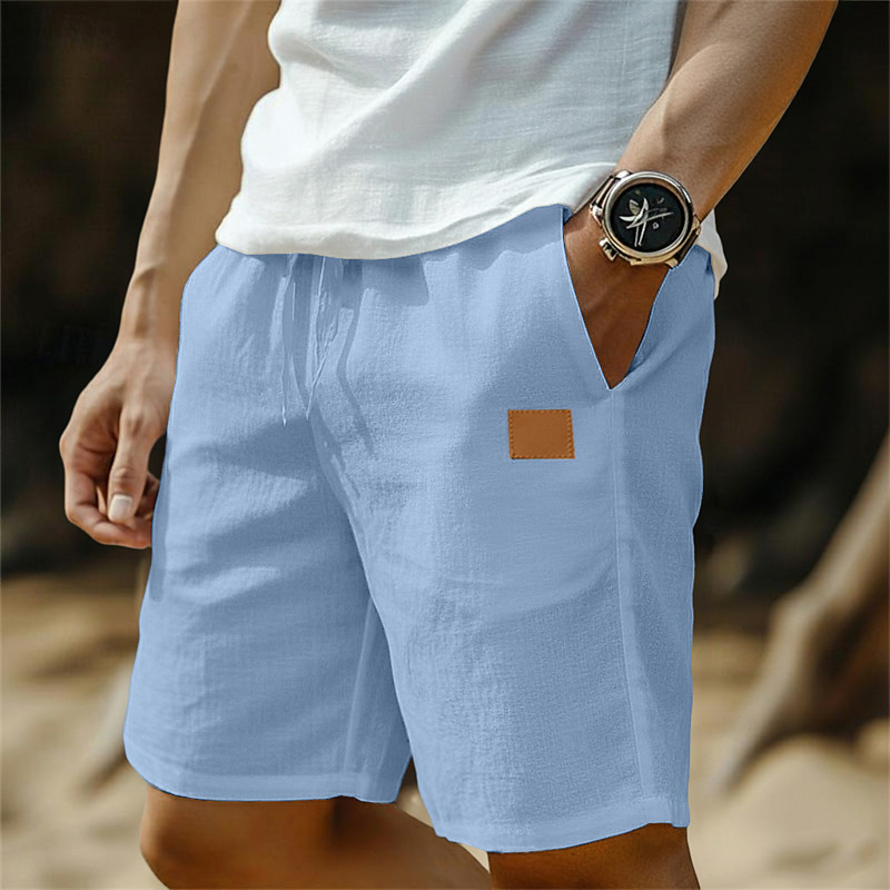 Men's Shorts Linen Shorts Summer Shorts Beach Shorts Baggy Shorts Drawstring Elastic Waist Straight Leg Plain Comfort Breathable Knee Length Casual Daily Outdoor Vacation Retro Vintage Blue Black