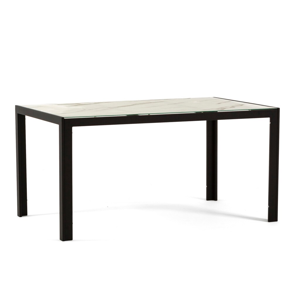 RATTATAN Rechteckiger Tisch 150x90 cm für Innen- und Außenbereich, aus Aluminium und Glas, für Küche, Esszimmer, Garten, 6 Personen–MILO–Schwarz/Marmor