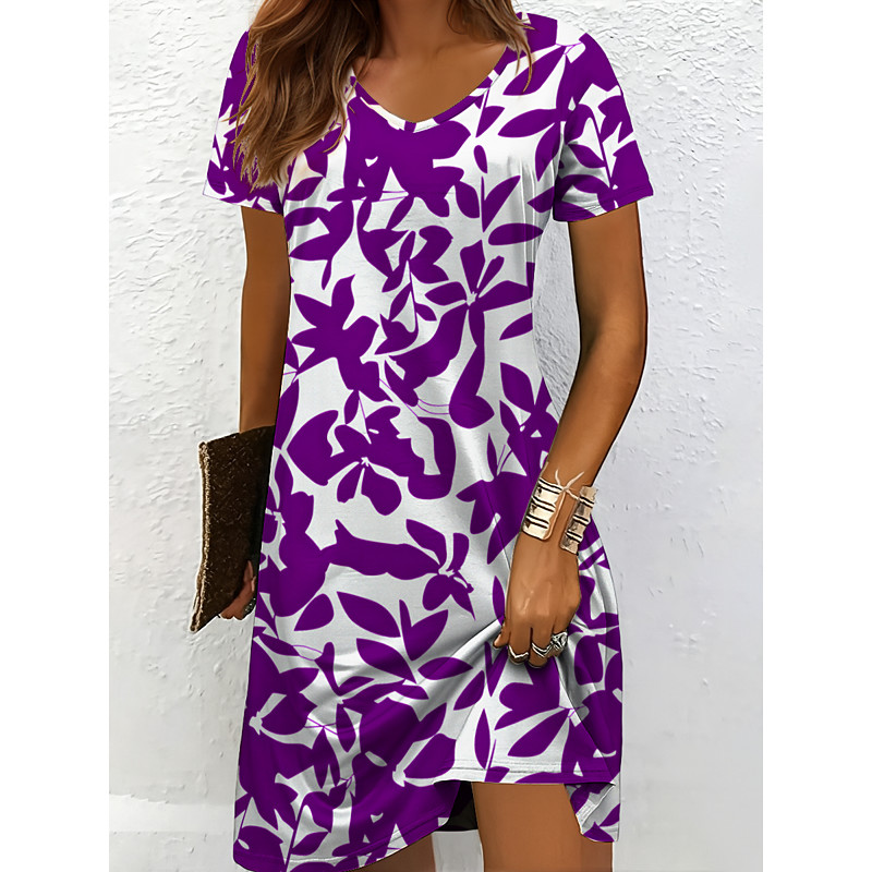 Women's Midi Dress T Shirt Dress Tee Dress Sundress A Line Dress Vacation Casual Beach Beach Regular Fit Floral Graphic Leaf Short Sleeve V Neck Black And White Yellow Red Blue Summer Spring