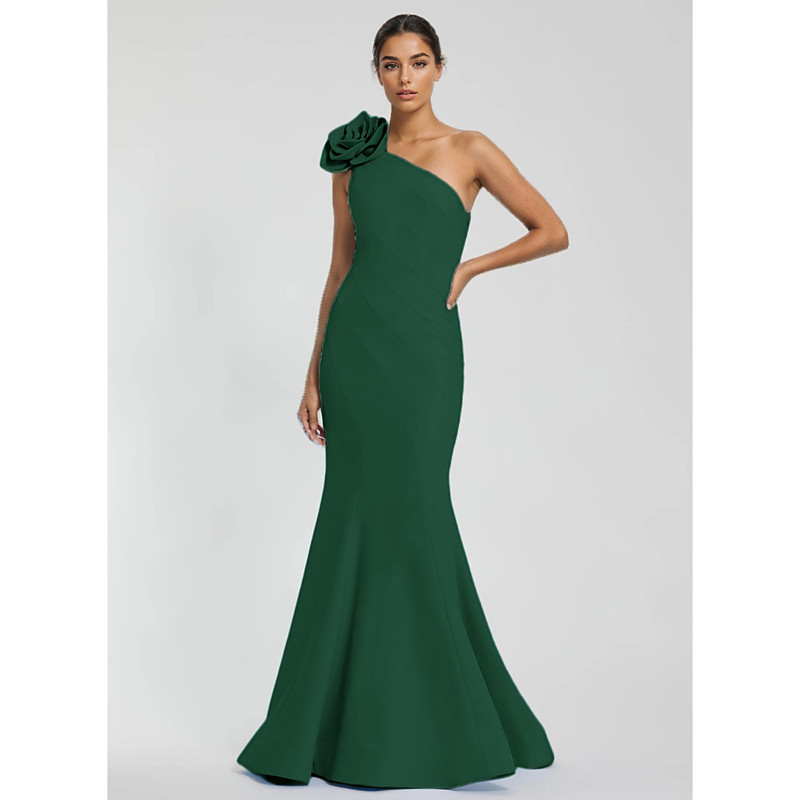 Mermaid Trumpet Floor Length Prom Dresses Evening Gown Ball Gown Formal Dress Elegant Vintage Sleeveless One Shoulder Wedding Formal Stretch Crepe with Pleats