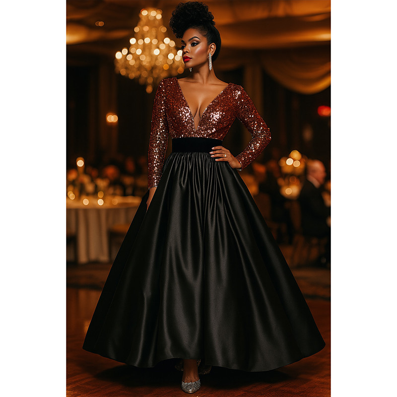 A-Line Mermaid Trumpet Floor Length Cocktail Dresses Evening Gown Ball Gown Formal Dress Elegant Sleeveless V Neck Garden Party Wedding Satin Sequined with Ruched