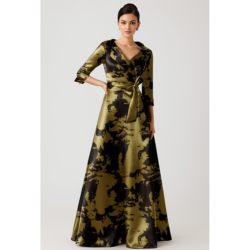 A-Line Floor Length Evening Gown Ball Gown Formal Dress Elegant Vintage 3/4 Length Sleeve Lapel Wedding Formal Pocket Nylon with Bow(s)