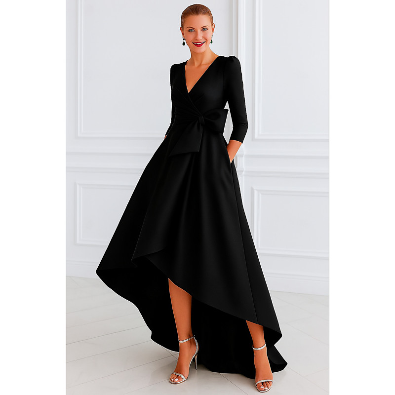 A-Line Floor Length Evening Gown Ball Gown Formal Dress Elegant Vintage Black Dress 3/4 Length Sleeve V Neck Wedding Formal Pocket Nylon with Bow(s) Strappy