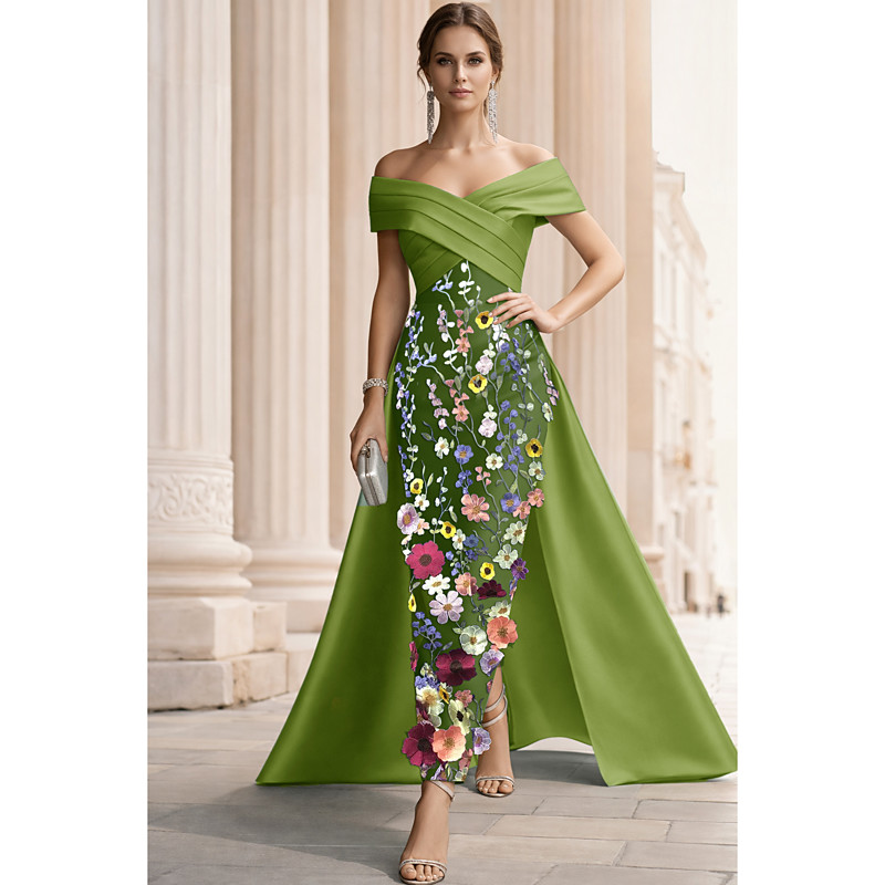 Mermaid Trumpet Floor Length Beaded Eembroidered Formal Dresses Mother of the Bride Dress Evening Gown Ball Gown with Overskirt Formal Dress Elegant Glittering Celebrity Style Sleeveless Off Shoulder