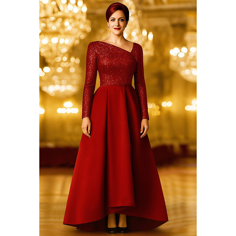 A-Line Asymmetrical Floor Length Evening Gown Ball Gown Formal Dress Elegant Glittering Silky Long Sleeve One Shoulder Wedding Formal Pocket Satin with Glitter Shawl