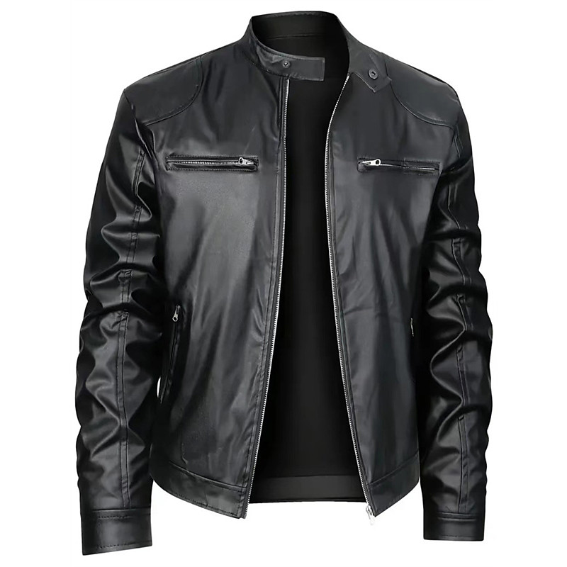 Men's Faux Leather Jacket Transition Jacket Biker Jacket Motorcycle Jacket Outdoor Casual Daily Windproof Warm Adjustable Fall Pure Color Punk Fashion Casual Daily Stand Collar Regular Regular Faux