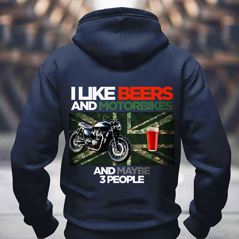 Men's Funny Hoodie I Like Beers Motorbikes Maybe 3 People Biker Beer Lover Long Sleeve Gift