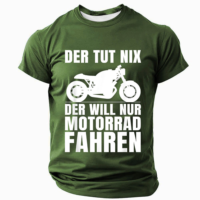 Men's Motorcycle Graphic T-Shirt - 'He Just Wants to Ride' German Humor Biker Tee for Hobby Enthusiasts