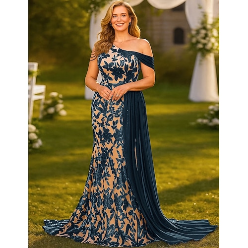 Linea ad A Lunghezza al pavimento Perline ricamate Abito Formale Abito da madre della sposa Abiti da Quinceanera Elegante Festa Taglie Forti Senza Maniche Senza Spalle Festa serale Matrimonio con
