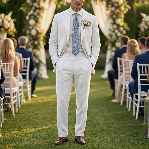 Uomo Abiti da festa Matrimonio primaverile Casuale Bianco Rosa Primavera Estate Tuta Bavero classico Festa Formale Tinta unita Vestibilità su misura 2 pezzi Monopetto a un bottone