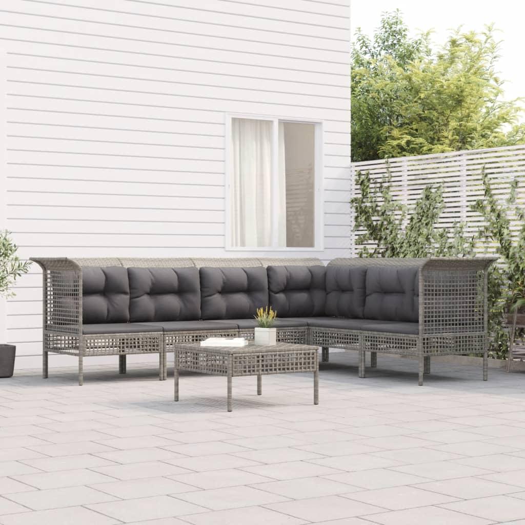 Sofasæt til haven 6 dele med hynder polyrattan sort