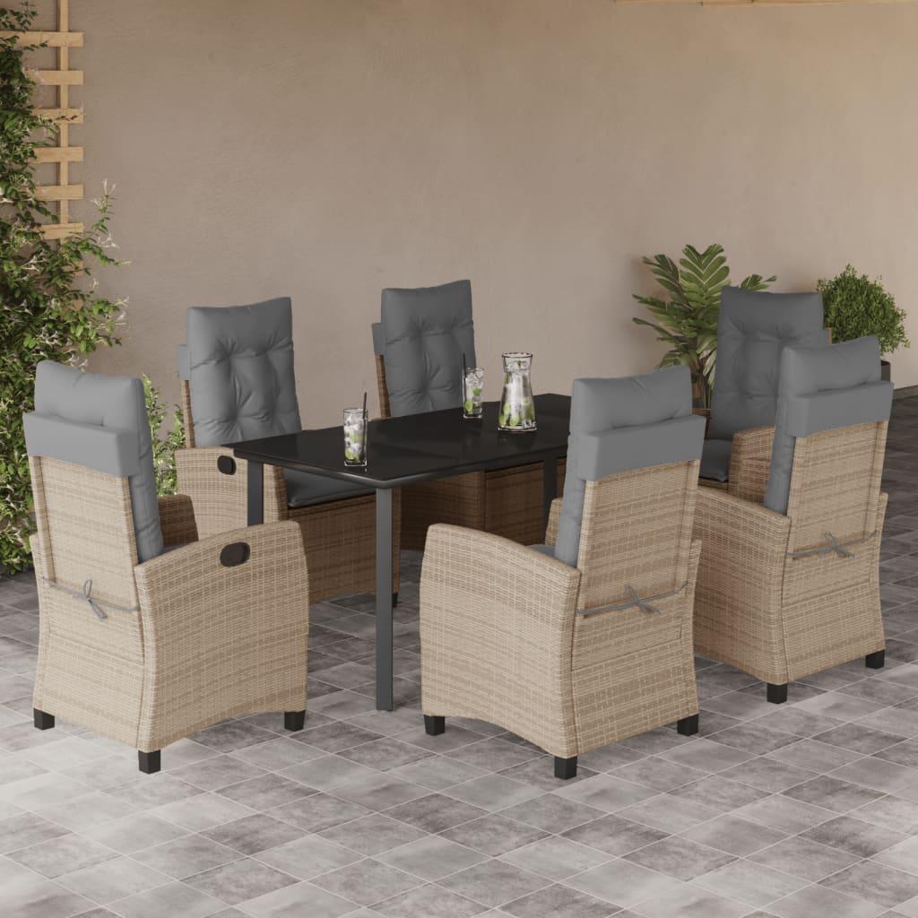 Udendørs spisebordssæt 9 dele med hynder polyrattan beige