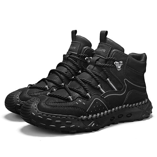 scarponi da trekking da uomo in similpelle color cuoio: resistenti e di supporto con cuciture eleganti, ideali per avventure all'aria aperta e gite in montagna