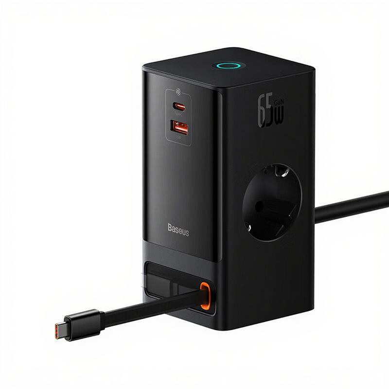 Baseus PowerCombo Digital PowerStrip 2AC+1U+1C+Retractable-C 65W with 1.5m power cord EU Black
