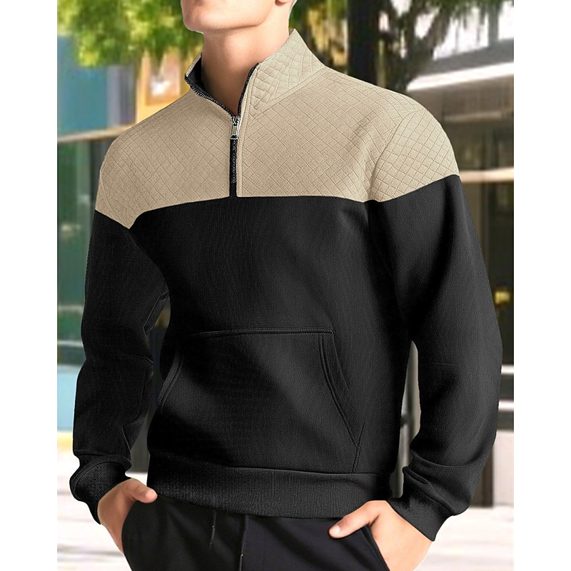Men's Polo Polo Shirts Vacation Street Quarter Zip Long Sleeve Fashion Basic Color Block Patchwork Pocket Spring Fall Tailored Fit Black Army Green Navy Blue khaki Grey Polo