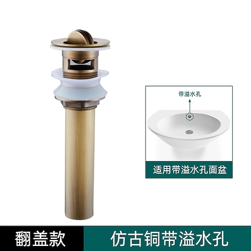 Ottone anticato inciso, tappo di scarico per lavandino del bagno, senza foro di troppopieno, sifone per lavabo da cucina
