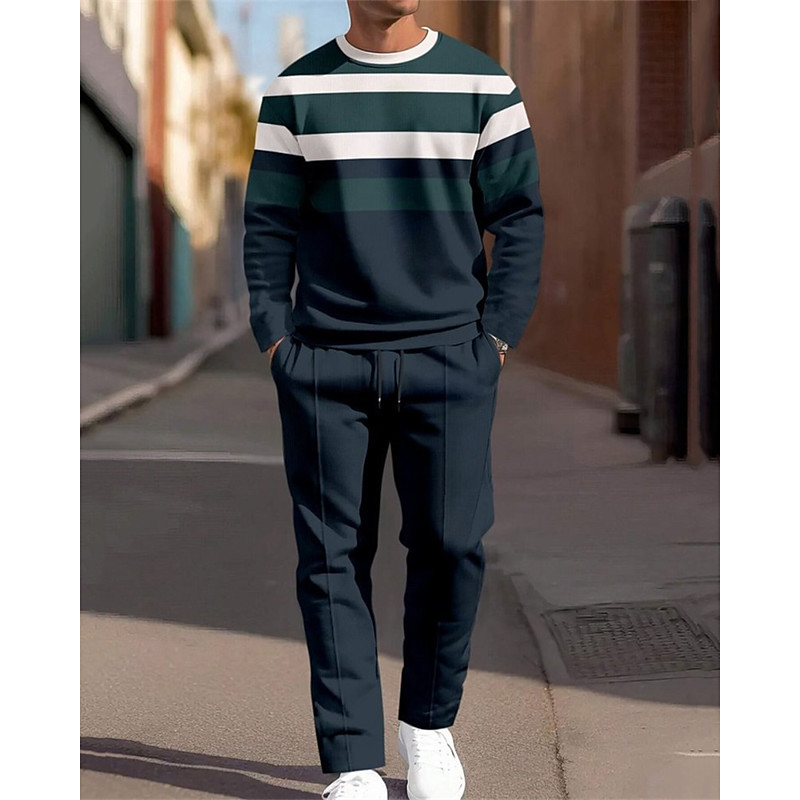 Men's 2-Piece Color Block Tracksuit - Casual Crew Neck Sweatshirt Jogger Set for Sports Streetwear Daily Wear