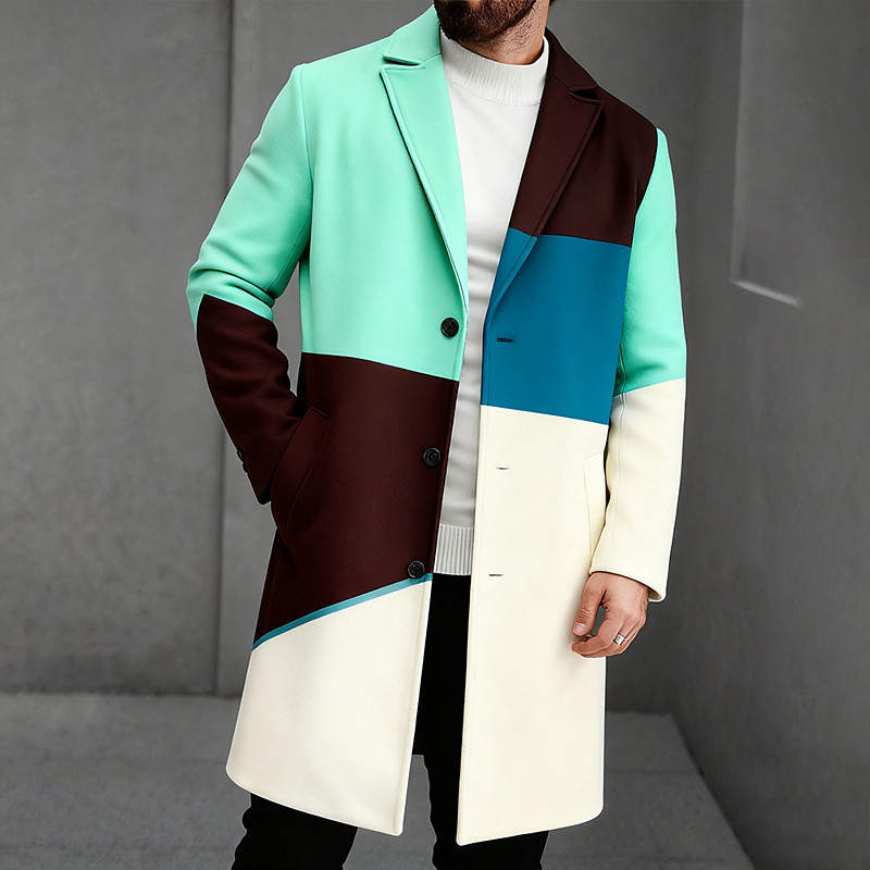 Men's Geometric Color Block Lightweight Jacket Overcoat Warm Casual Business Daily 3D Print Buttons Front Pocket Spring Fall Winter Notch Long Sleeve Blue 1 Red Blue