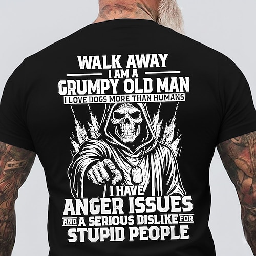 Herren-T-Shirt mit Aufdruck „Ich bin ein griesgrämiger alter Mann, ich liebe Hunde mehr als Menschen, habe Wutprobleme und mag keine dummen Menschen". Lustiges T-Shirt mit Grafik, Rundhalsausschnitt,