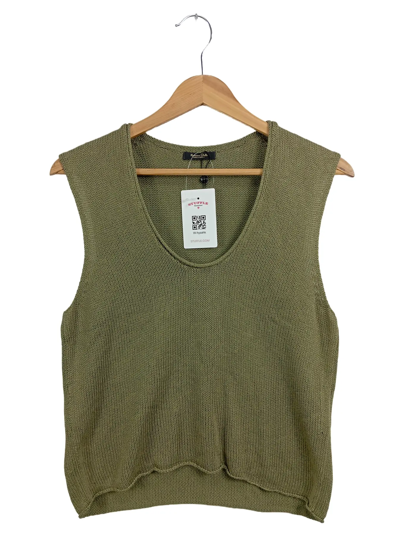 MASSIMO DUTTI Pullover Damen S Grün Ärmellos Feinstrick 98% Viskose 2% Polyester