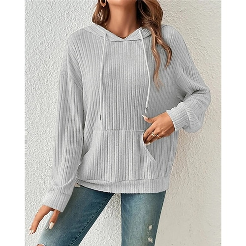 Per donna Felpa con cappuccio Semplice Streetwear Casual Manica Lunga Con Cappuccio Top Regolari Streetwear Ferie Tasca Nero Verde Cachi Grigio Autunno Inverno