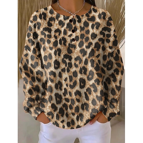 Per donna Felpa Pullover Grafico Geometrico Caldo Classico Casual Manica Lunga Girocollo Top Regolari Streetwear Abbigliamento Quotidiano Casuale Bottoni Stampato Nero Rosso Verde Kaki Primavera