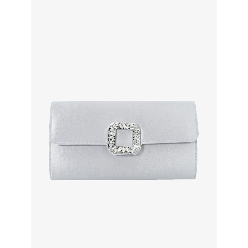 Women's White Satin Clutch with Rhinestone Buckle - Elegant Evening Bag for Special Occasions