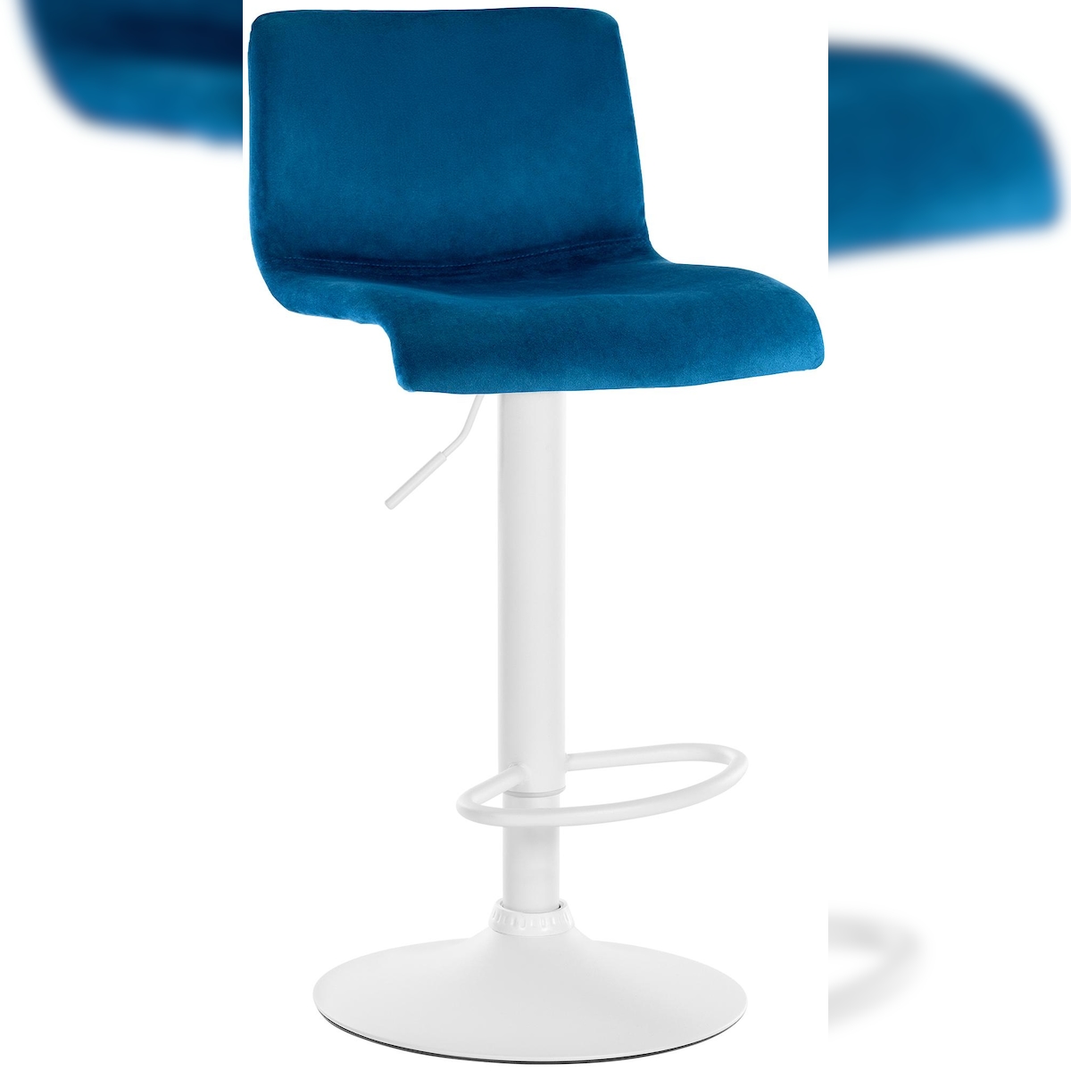 DELUKE Barhocker PESAN - Samt Blau 39x36x83 cm Weiß | Barstuhl Höhenverstellbar Mit Lehne Drehbar Tresenhocker Tresenstuhl Kneipenhocker Kneipenstuhl