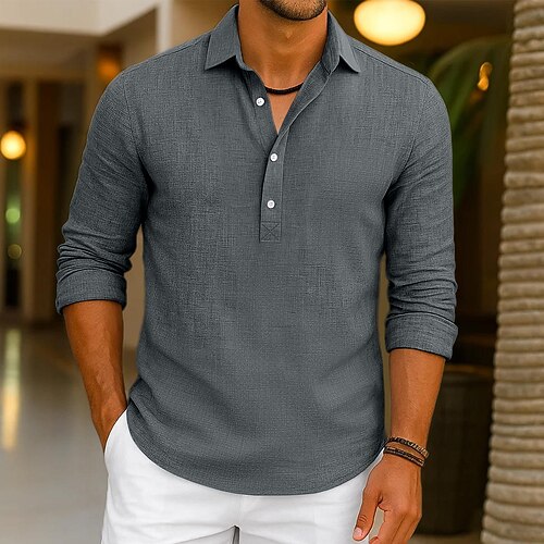 Per uomo Camicia Camicia di lino Camicia Estiva Abbigliamento da spiaggia Semplice Vacanza Casuale Nero Bianco Verde Grigio Manica Lunga Bavero Estate Primavera Abbigliamento