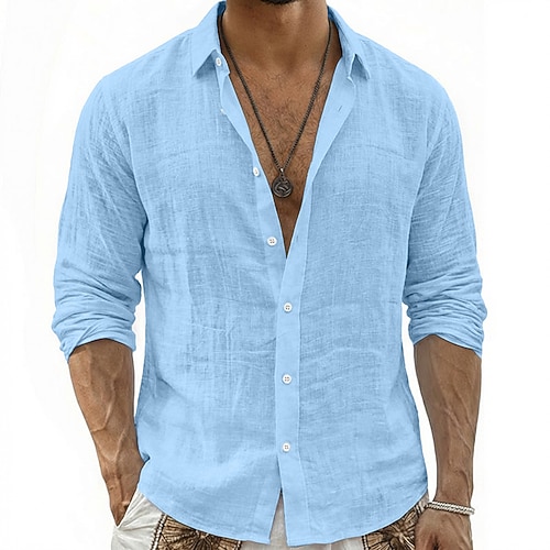Per uomo Camicia Camicia di lino Camicia Estiva Camicia con Bottoni Semplice Casuale Quotidiano Nero Bianco Rosa Verde Manica Lunga Colletto Primavera Estate Abbigliamento