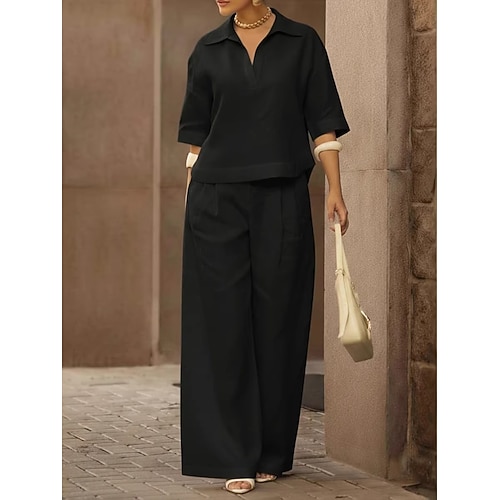 Per donna Set di biancheria in cotone Set di Pantaloni Manica 3/4 Scollo a V Tinta unica Moda Streetwear Casuale Quotidiano All'aperto Blu Nero Bianco Primavera Estate Vestibilità comoda