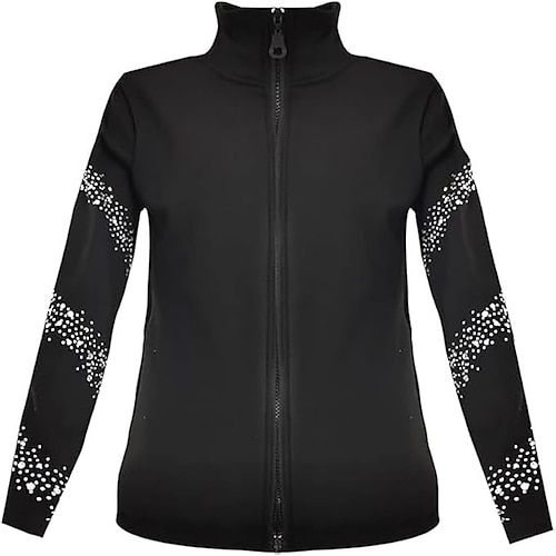 giacca in pile per pattinaggio artistico, giacca da pattinaggio sul ghiaccio da donna e da ragazza, top nero elastico, abbigliamento da pattinaggio per competizione, termico, caldo, con