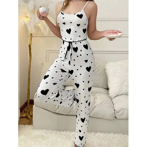 Per donna Set Pigiama Casual Comfort Cuore Elastico in vita Pantalone Quotidiano Casa Senza Maniche Spalline Blu Nero Rosa Rosso Estate Primavera Vestibilità regolare