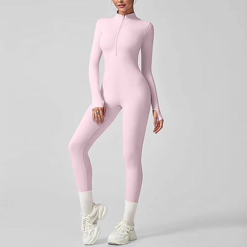 Per donna Tuta da allenamento Tutina Cerniera Tinta unica Body Primavera Autunno Nero Rosa Allenamento in Palestra Fitness Yoga Elastico Traspirante Manica Lunga Sport Abbigliamento sportivo
