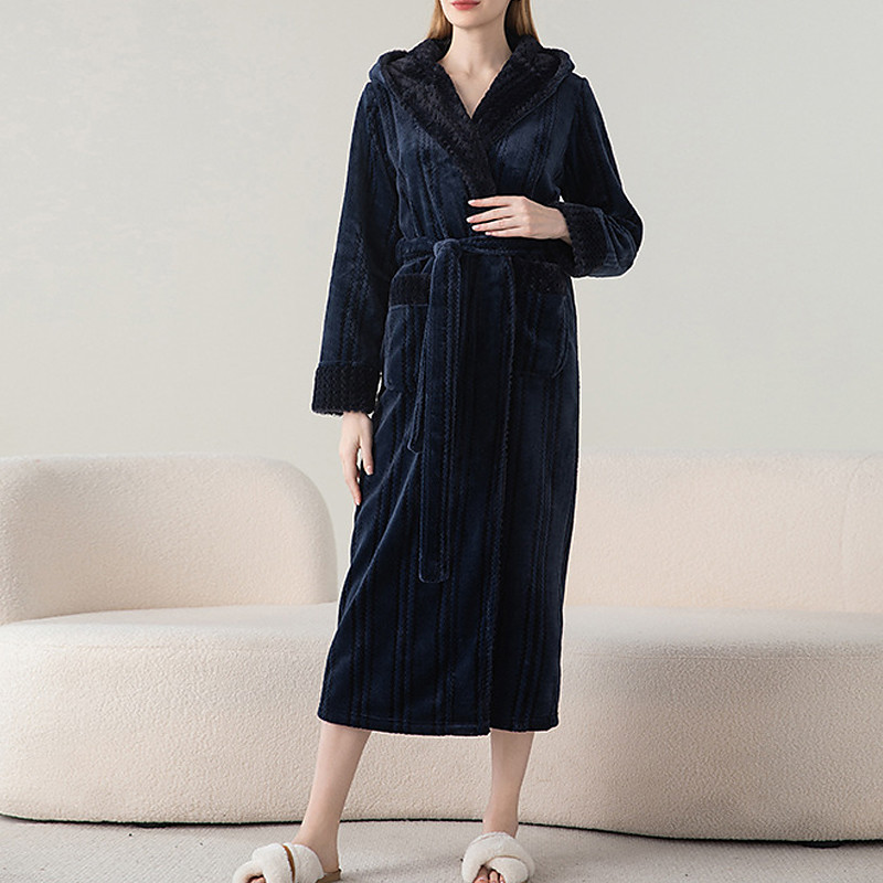 Women's Pajamas Robe Flannel Fashion Casual Pure Color Pocket Vacation Home Bed Long Sleeve V Neck Navy Blue Purple Brown Beige Gray Fall Winter Tailored Fit
