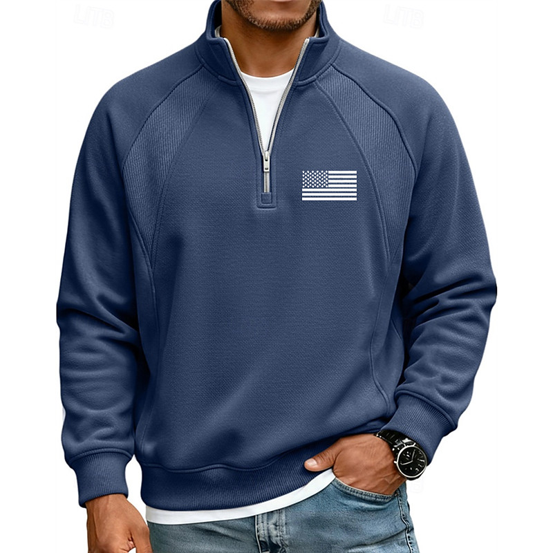 Men's Polo Polo Shirts Vacation Street Quarter Zip Long Sleeve Fashion Basic US Flag Patchwork Printing Fall Winter Tailored Fit Blue Apricot Black White Red Navy Blue Polo