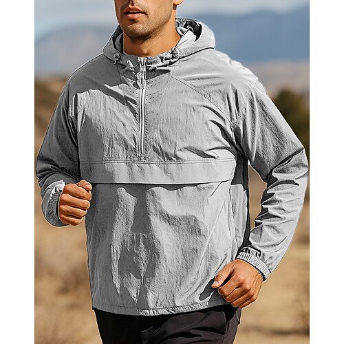 Per uomo Tinta unita Giaccia da corsa Giacca da esterno Giacca con cappuccio Estate Coulisse Tasca Zip a un quarto Manica Lunga Athleisure Protezione Solare Antivento Traspirante Pesca Escursionismo