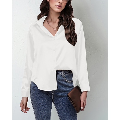 Per donna Camicia Elegant Elegante Raso/Satin Tinta unica Elegante Essenziale Casual Manica Lunga Colletto a Camicia Top Regolari Quotidiano Uscire Bottoni Bianco Giallo Blu Reale Viola chiaro Marrone
