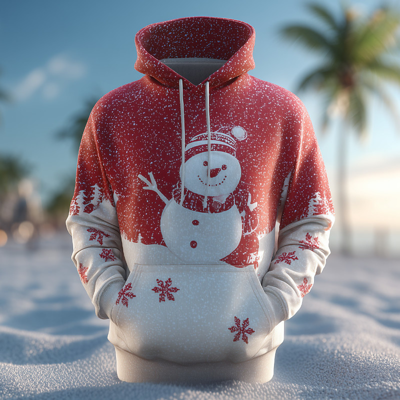 Christmas Men's Santa Claus Snowman Hoodie Sweatshirt Fashion Daily Crew Neck Home Party Gift Red 3 Red Drawstring Fall Winter Designer