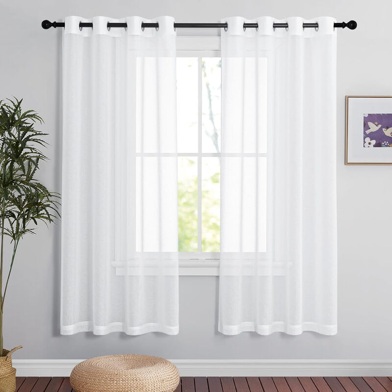 PONY DANCE Sheer Linen Look Curtains Pencil Pleat, 2 Panels W140 x L145 cm(W55 x L57 inch), White