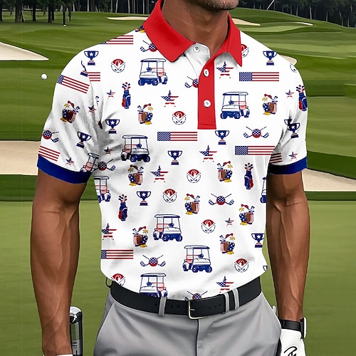 Giorno dell'Indipendenza Americana Per uomo Bandiera Americana Golf Polo Sportivi Manica Corta Magliette polo Camicie con Colletto Casual Athleisure Bottoni Estate Blu Rosso