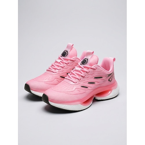 Scarpe da corsa imbottite rosa da donna: scarpe sportive leggere con lacci, ideali per camminare, per l'uso quotidiano e per uno stile sportivo casual.
