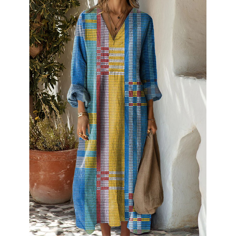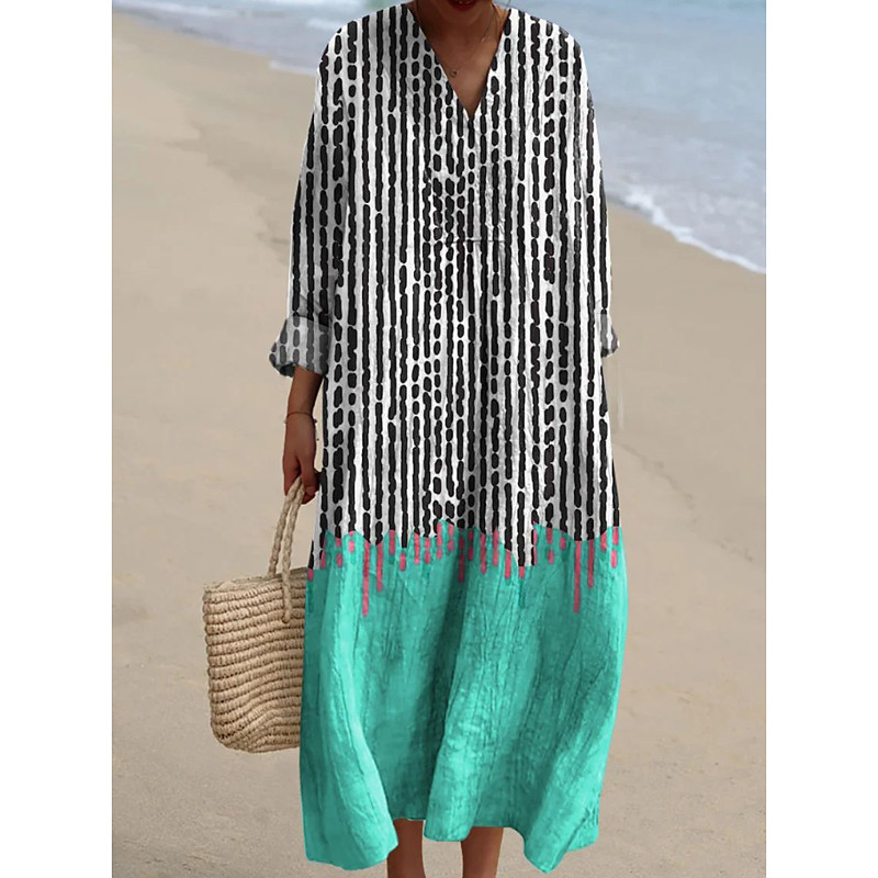 Women's Maxi Dress Sundress Shift Dress Vacation Casual Beach Going out Loose Fit Graphic Geometric Abstract Long Sleeve V Neck Black Yellow Light Brown Green Summer Spring Fall