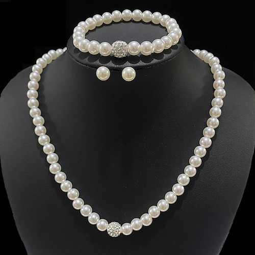 set di gioielli di perle classiche: elegante collana, bracciale e orecchini a bottone in perle finte bianche per donna