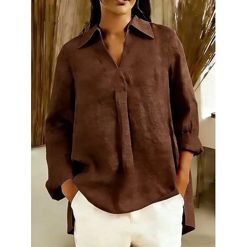 Natale Per donna Blusa Tinta unica Elegante Affari Manica Lunga Scollo a V Top Regolari Quotidiano Bianco Vino Marrone Estate Primavera Autunno