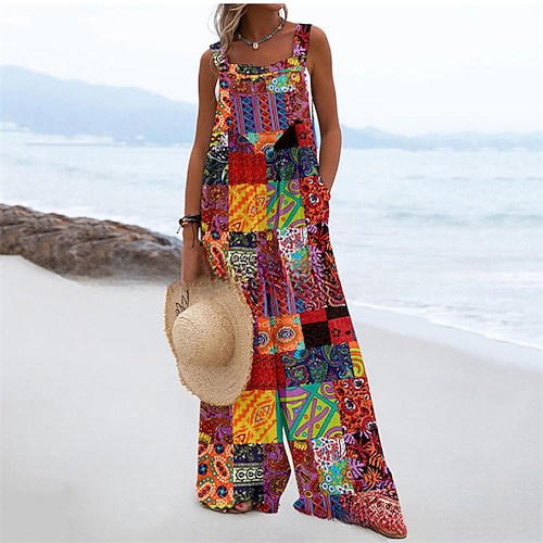 Per donna Normale Tuta Elegante Tinta unica Senza Maniche Gamba larga Collo quadrato Vita alta Quotidiano Casa Vestibilità comoda Blu Nero Giallo Estate