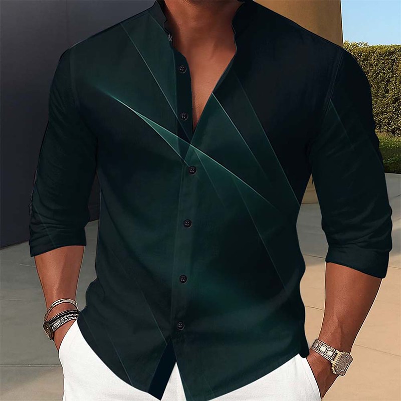 Men's Geometric Gradient Line Shirt Stand Collar Shirt Long Sleeve Fashion Casual Dailywear Holiday Spring Fall Mandarin Collar Band Collar 3D Print Button Up Shirts Dark Red Dark Green Dark Blue