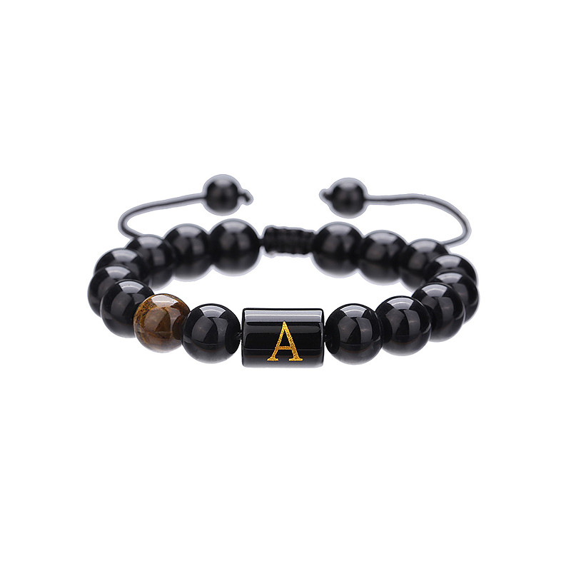Men's Adjustable Natural Stone Bracelet with Alphabet Letter Design, Customizable with 26 Letters, Perfect for Gifting, Casual and Special Occasions