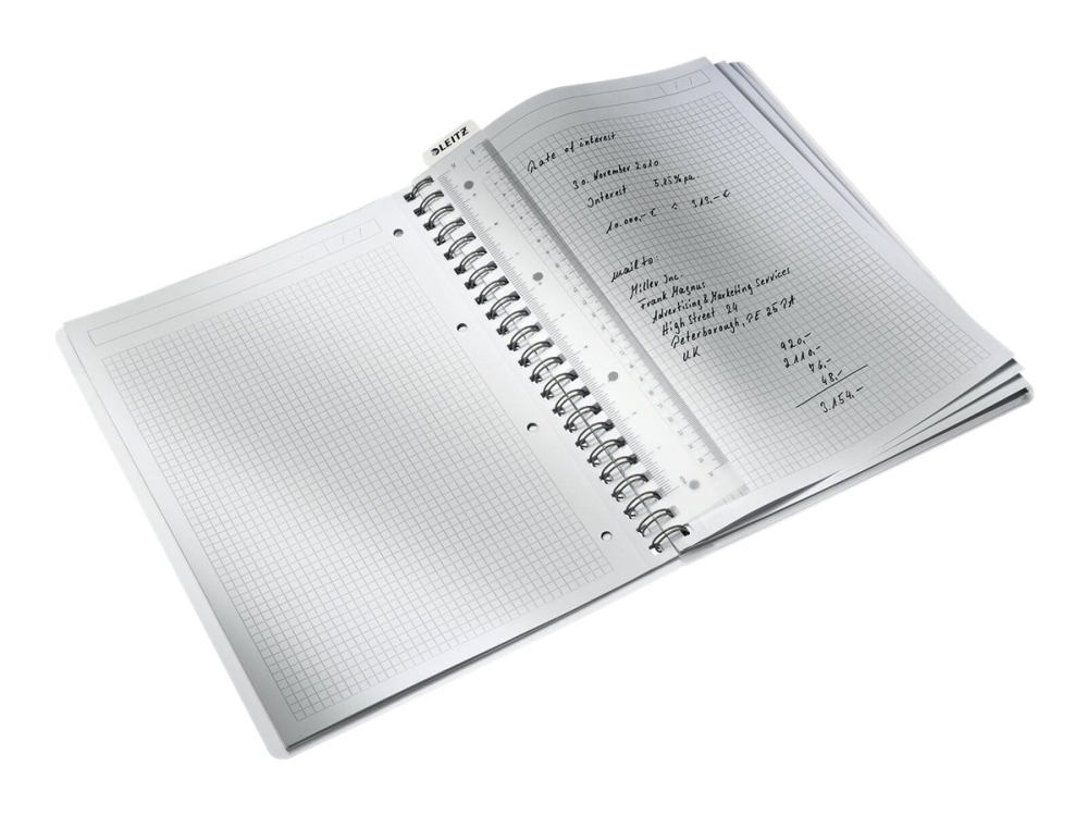 Leitz WOW - Notisblokk - spiralbundet - A4 (210 x 297 mm) - 80 ark / 160 sider - rutet - 4 hull - hvit - polypropylen (PP)