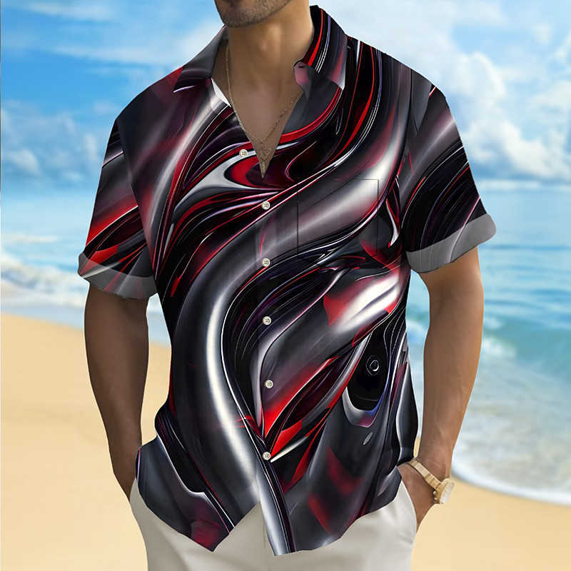Men's Geometric Gradient Waves Shirt Summer Shirt Button Up Shirt Short Sleeve Fashion Casual Outdoor Vacation Dailywear Summer Spring Turndown 3D Print Collared Shirts Front One Pocket White 1 Black